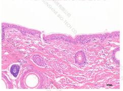 99% 특급 Sponge Spicule을 피부 표면에 수직으로 압력 가했습니다. 일정 시간 유지 후 샘플을 채취하여 동결 절편을 제작하고 HE 염색을 거쳐, 현미경 하에서 직접 바늘 끝 흔적의 수직 길이를 관찰하고 정밀 측정하여 실제 침투 깊이로 삼았습니다. 각 실험군은 독립적으로 5회 반복 수행되었으며, 통계 데이터는 "평균값±표준편차" 형태로 제시하고 이상값을 제거하여 결론의 신뢰성과 재현성을 보장했습니다. 실험 결과 및 결론 실험 데이터는 선샤인바이오텍의 실제 침투 깊이가 162–235μm 사이에서 안정적으로 유지되며, 관측된 최장 값은 213±18μm로, 양호한 배치 반복성과 침투 일관성을 보여줍니다. 해당 미세 바늘 샘플의 평균 물리적 길이는 250μm이며, 실제 침투 깊이는 물리적 길이보다 평균 약 14.8% 낮습니다. 이 깊이 범위(100–300μm)는 피부 해부학 이론과 업계 안전 합의를 종합한 것으로, 공인된 안전하고 효과적인 침투 범위에 속합니다: 그 상한선(300μm)은 진피 천층 주요 혈관 분포 시작 영역(약 300–500μm)보다 훨씬 낮으며, 하한선은 인체 각질층 장벽(두께 10–40μm)을 충분히 돌파하여 활성 성분의 운반 미세 통로를 확실하게 구축할 수 있습니다. 결론적으로, 썬샤인바이오텍사사는